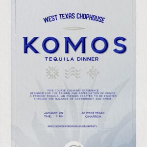 Join us at West Texas Chophouse for an unforgettable Tequila Dinner featuring Código 1530 Tequila. Experience an evening of bold flavors and refined pairings at West Texas Chophouse. Our chef has crafted a curated multi-course menu, expertly paired with the character of Código 1530 Tequilas, from crisp Blanco to rich Añejo.
